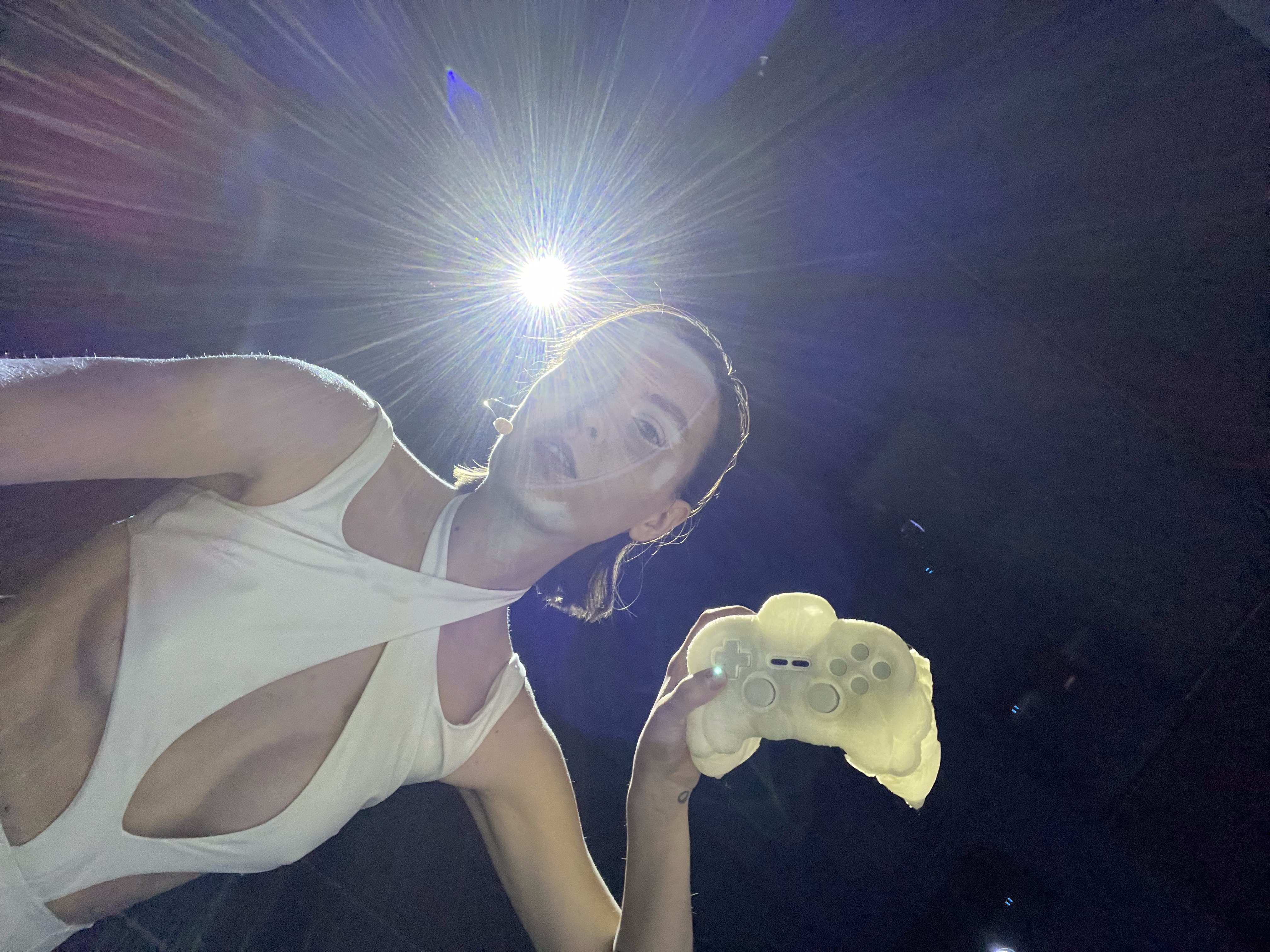 Hydrosex Call is a multimedia performance by Justyna Górowska that transports viewers into an interactive, virtual environment inhabited by WetMeWild – a digital water nymph and an advanced artificial intelligence model trained by the artist. This technological entity, inspired by mythological water spirits from Slavic folklore, serves as both a guide and a dialogical partner within the performance, becoming at the same time the artist’s digital alter ego.